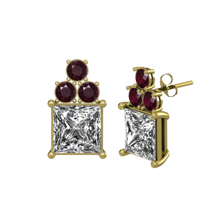 Beyaz zirkon ve kök yakut 925 ayar altın kaplama gümüş küpe