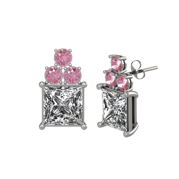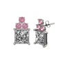 Beyaz zirkon ve pembe kuvars 14 ayar beyaz altın küpe