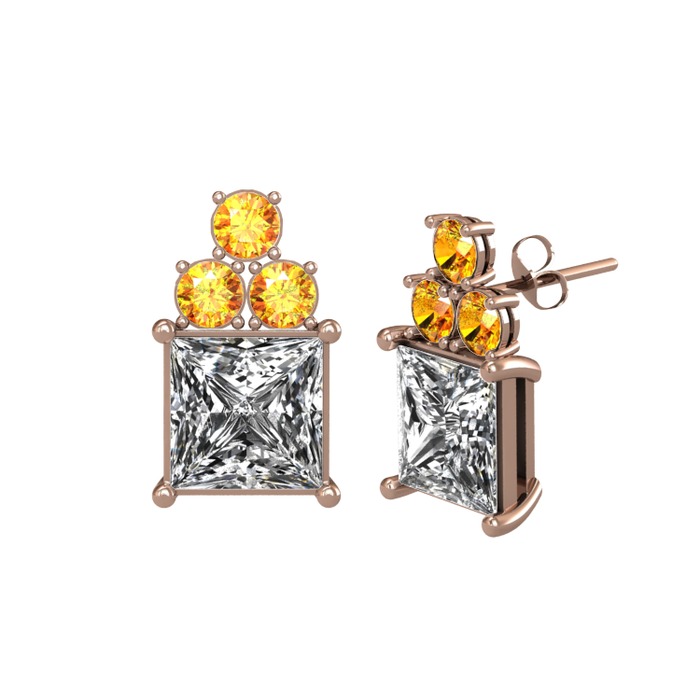 Beyaz zirkon ve sitrin 8 ayar rose altın küpe