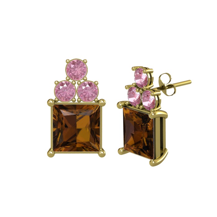 Dumanlı kuvars ve pembe kuvars 18 ayar altın küpe
