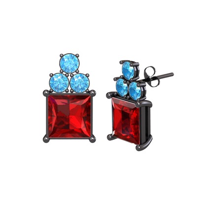 Garnet ve akuamarin 925 ayar siyah rodyum kaplama gümüş küpe