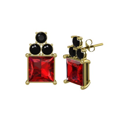 Garnet ve siyah zirkon 8 ayar altın küpe