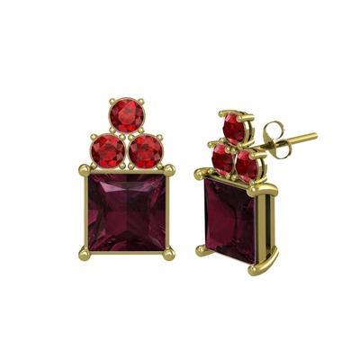 Kök yakut ve garnet 18 ayar altın küpe