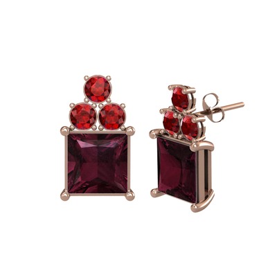 Kök yakut ve garnet 18 ayar rose altın küpe