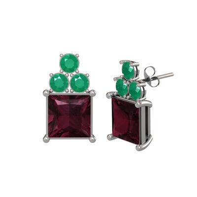 Kök yakut ve kök zümrüt 925 ayar gümüş küpe