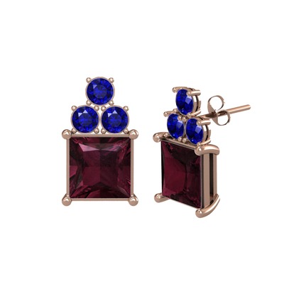 Kök yakut ve lab safir 18 ayar rose altın küpe