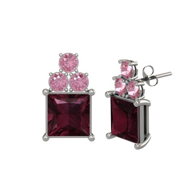 Kök yakut ve pembe kuvars 925 ayar gümüş küpe