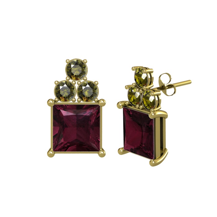 Kök yakut ve peridot 18 ayar altın küpe
