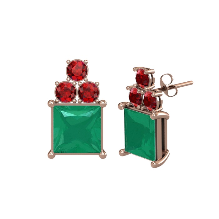 Kök zümrüt ve garnet 14 ayar rose altın küpe