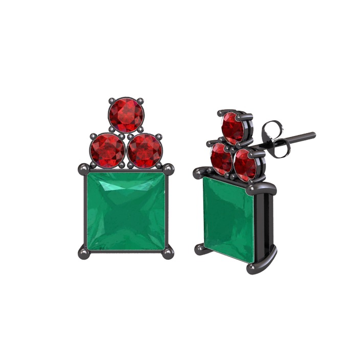Kök zümrüt ve garnet 925 ayar siyah rodyum kaplama gümüş küpe