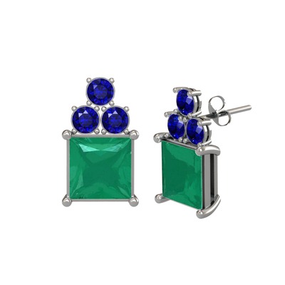Kök zümrüt ve lab safir 18 ayar beyaz altın küpe