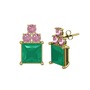 Kök zümrüt ve pembe kuvars 18 ayar altın küpe
