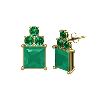 Kök zümrüt ve yeşil kuvars 18 ayar altın küpe