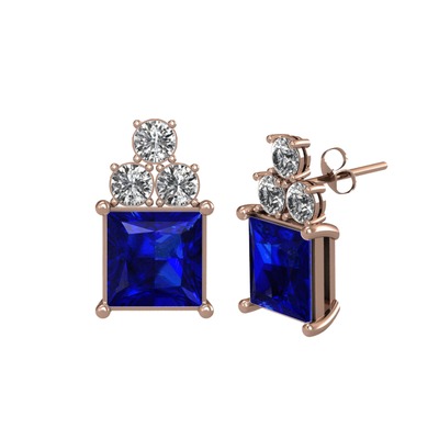 Lab safir ve beyaz zirkon 14 ayar rose altın küpe