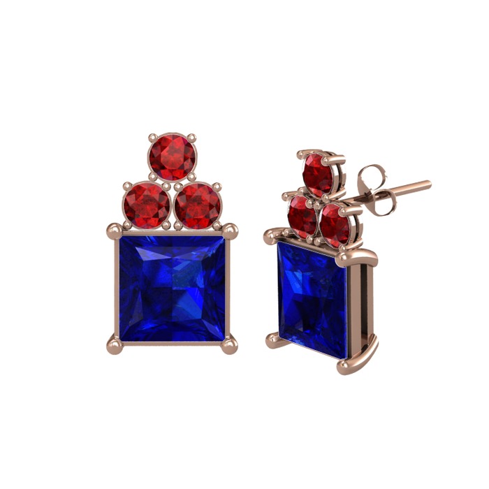 Lab safir ve garnet 925 ayar rose altın kaplama gümüş küpe