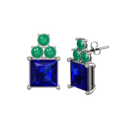 Lab safir ve kök zümrüt 925 ayar gümüş küpe