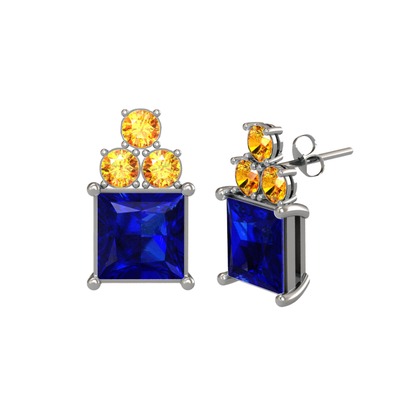 Lab safir ve sitrin 925 ayar gümüş küpe