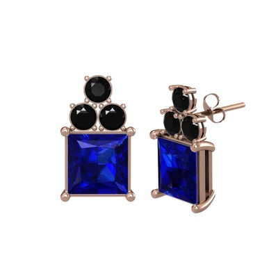 Lab safir ve siyah zirkon 14 ayar rose altın küpe