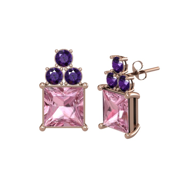 Pembe kuvars ve ametist 18 ayar rose altın küpe
