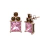 Pembe kuvars ve dumanlı kuvars 8 ayar rose altın küpe