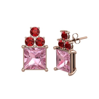 Pembe kuvars ve garnet 925 ayar rose altın kaplama gümüş küpe