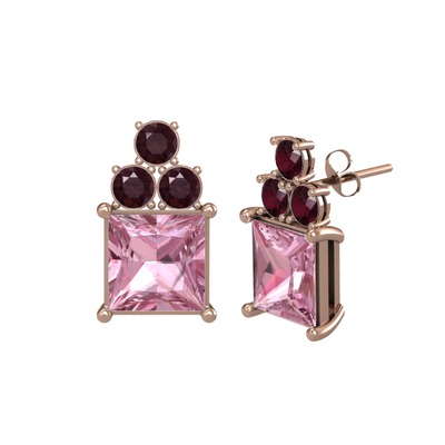 Pembe kuvars ve kök yakut 14 ayar rose altın küpe