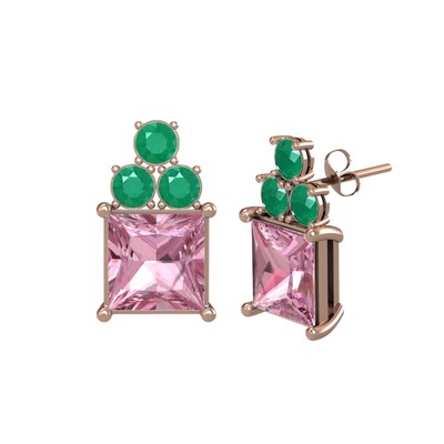 Pembe kuvars ve kök zümrüt 14 ayar rose altın küpe