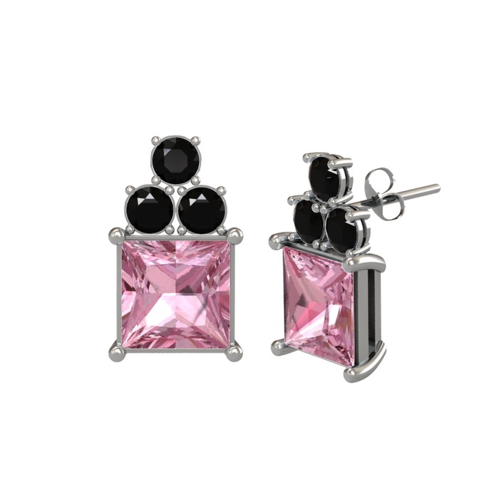 Pembe kuvars ve siyah zirkon 14 ayar beyaz altın küpe