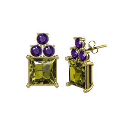 Peridot ve ametist 18 ayar altın küpe