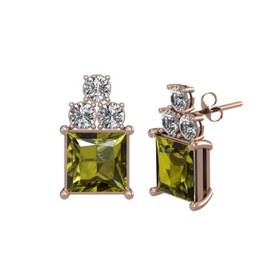 Peridot ve beyaz zirkon 18 ayar rose altın küpe