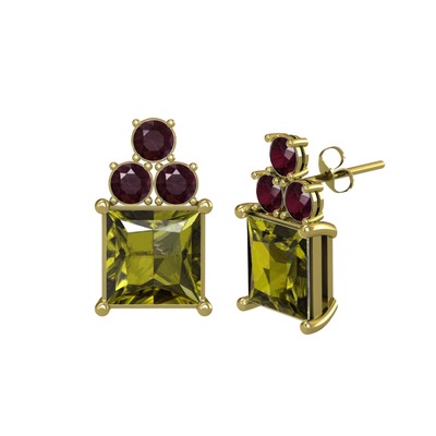 Peridot ve kök yakut 925 ayar altın kaplama gümüş küpe