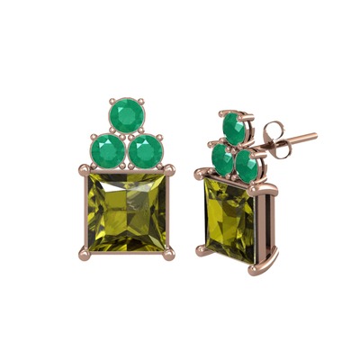 Peridot ve kök zümrüt 18 ayar rose altın küpe