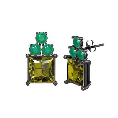 Peridot ve kök zümrüt 925 ayar siyah rodyum kaplama gümüş küpe