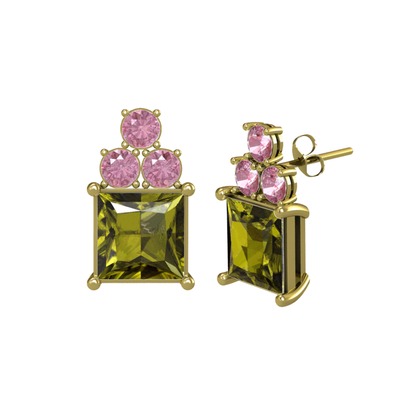 Peridot ve pembe kuvars 18 ayar altın küpe