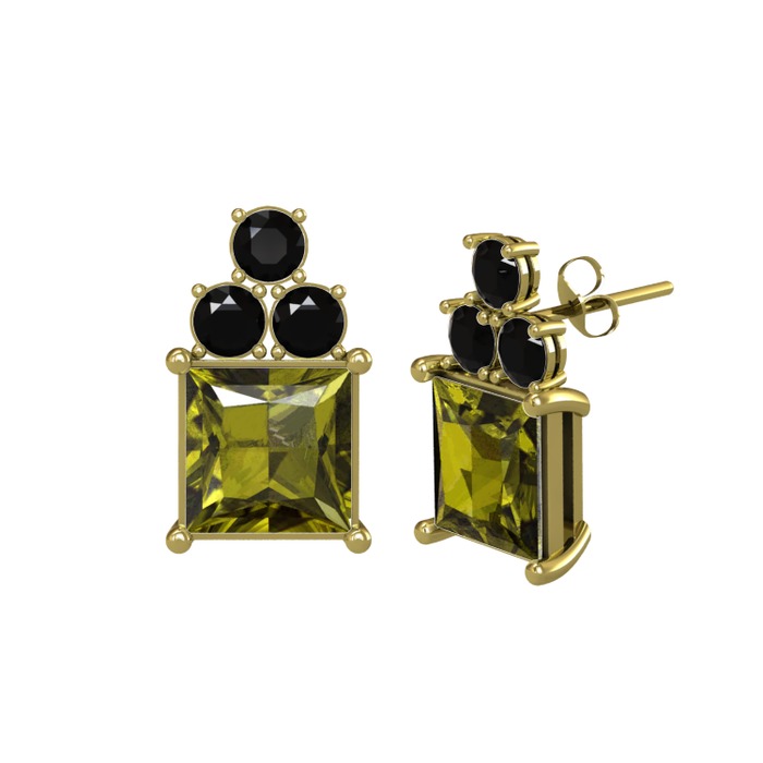 Peridot ve siyah zirkon 18 ayar altın küpe