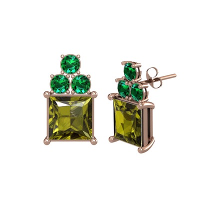 Peridot ve yeşil kuvars 18 ayar rose altın küpe