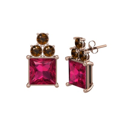 Rodolit garnet ve dumanlı kuvars 925 ayar rose altın kaplama gümüş küpe