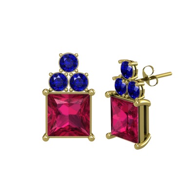 Rodolit garnet ve lab safir 925 ayar altın kaplama gümüş küpe