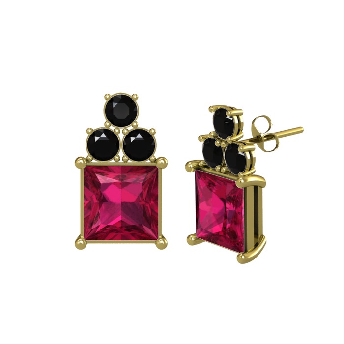 Rodolit garnet ve siyah zirkon 925 ayar altın kaplama gümüş küpe