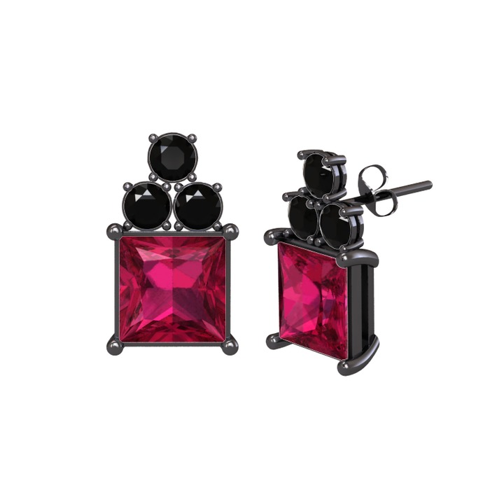 Rodolit garnet ve siyah zirkon 925 ayar siyah rodyum kaplama gümüş küpe