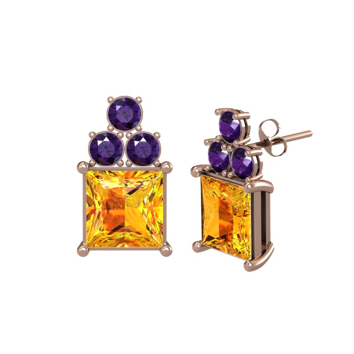 Sitrin ve ametist 8 ayar rose altın küpe