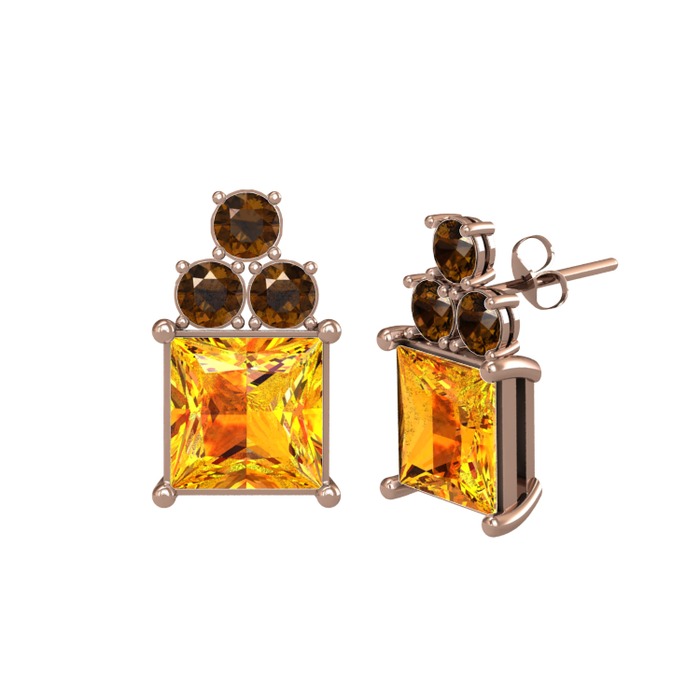 Sitrin ve dumanlı kuvars 14 ayar rose altın küpe