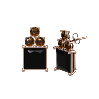 Siyah zirkon ve dumanlı kuvars 925 ayar rose altın kaplama gümüş küpe