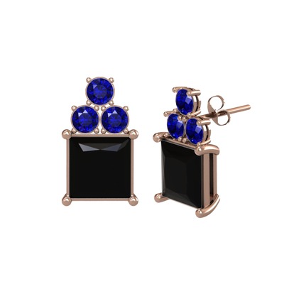 Siyah zirkon ve lab safir 14 ayar rose altın küpe