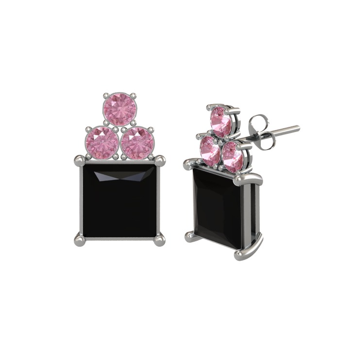 Siyah zirkon ve pembe kuvars 8 ayar beyaz altın küpe
