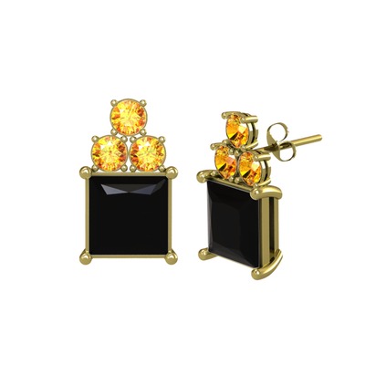 Siyah zirkon ve sitrin 14 ayar altın küpe