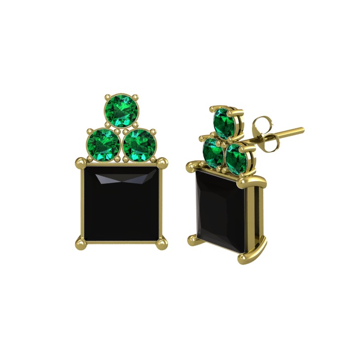 Siyah zirkon ve yeşil kuvars 14 ayar altın küpe
