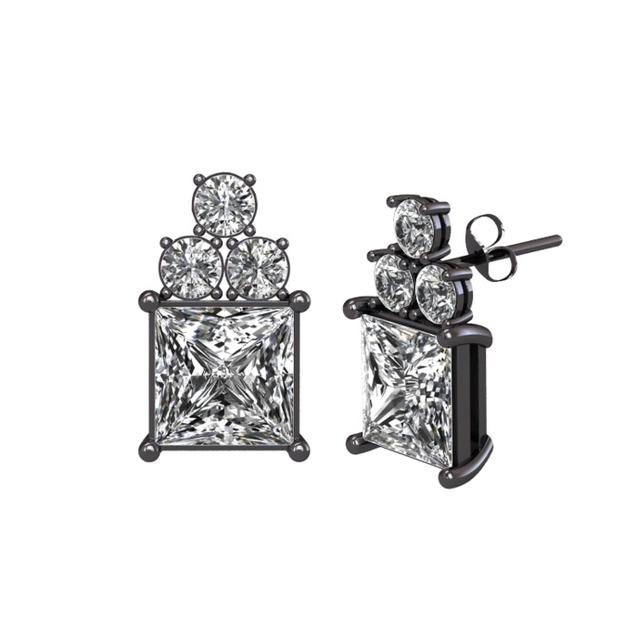 Swarovski ve beyaz zirkon 925 ayar siyah rodyum kaplama gümüş küpe