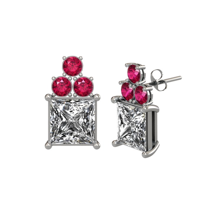 Swarovski ve rodolit garnet 18 ayar beyaz altın küpe