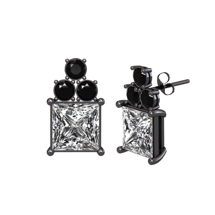 Swarovski ve siyah zirkon 925 ayar siyah rodyum kaplama gümüş küpe